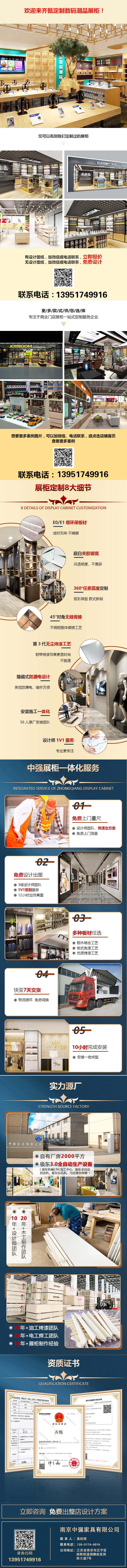 手機數碼產品等電子產品的專賣店,設計要超級時尚。圓柱形展示平臺,白色姿態,優雅大方。將各種電子產品放置在頂部,連接到手架上,突出了優美的曲線。擺放桌面掛的圓形裝飾,與柜臺形成整體性統一,設計巧妙獨特,突出美感。數字店的地板選用淡黃色地磚,防滑,保護了客人的安全,也避免了更多的人踩老。店鋪的天花板用水泥涂料裝飾,交叉的白色燈管勾勒出數字商店的美感。
